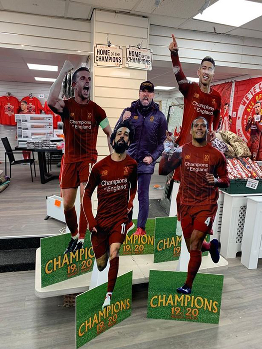 Some shops in Liverpool still believe in "Project Restart" until decorating the shop in a way that is confident that Liverpool will win the league championship. Such as taking a picture of a football player to show In which, underneath, there is a message that describes the league championship as well.